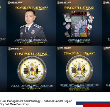 The Quezon City Jail - Male Dormitory consistently delivers outstanding performance to excellence as it garnered major recognitions at the BJMP NCR’s Best Awards and Gawad Penolohiya, held during the 1st Regional Management Meeting (RMM) under the leadership of newly appointed Regional Director JCSUPT BABY NOEL P MONTALVO, TLPE.