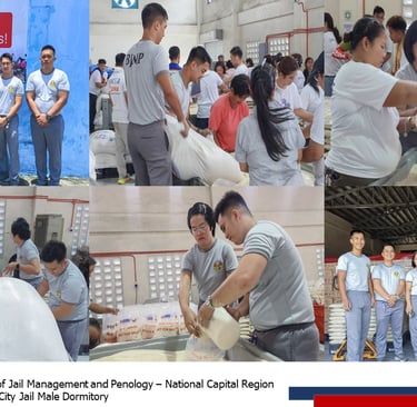 Personnel from the Quezon City Jail - Male Dormitory (QCJMD) recently volunteered at the Department of Social Welfare and Development - National Resource Operations Center (DSWD-NROC) in Barangay 195, Pasay City to assist in repacking relief goods.