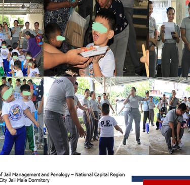 Nagsagawa ang mga personnel ng Quezon City Jail Male Dormitory ng isang Feeding Program at Read-a-Book Activity para sa mga bata ng Dela Costa Child Development Center sa Rodriguez, Rizal.